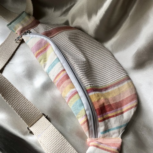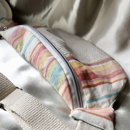 Des sacs colorés et upcyclés avec des tissus de seconde main fabriqués à la main à Bruxelles.