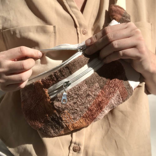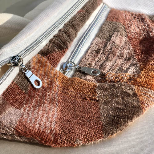 Des sacs colorés et upcyclés avec des tissus de seconde main fabriqués à la main à Bruxelles.