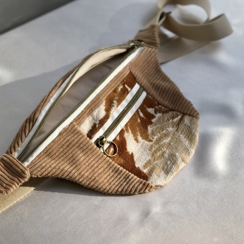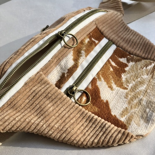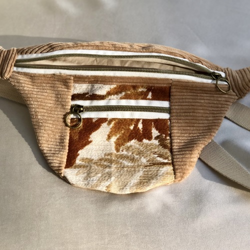 Des sacs colorés et upcyclés avec des tissus de seconde main fabriqués à la main à Bruxelles.