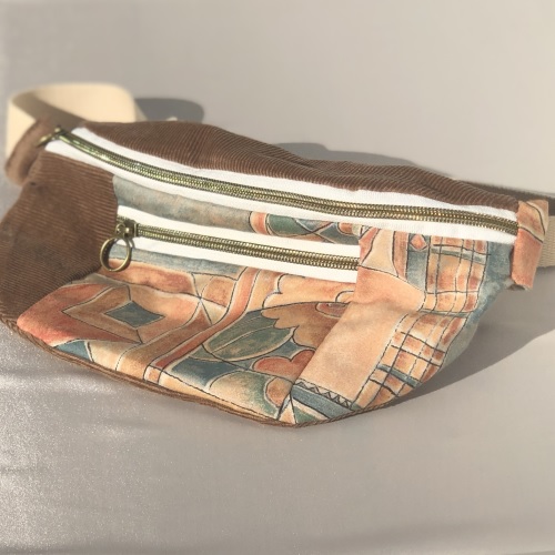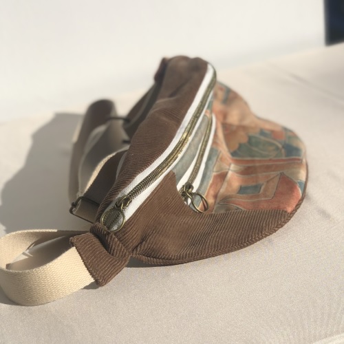 Des sacs colorés et upcyclés avec des tissus de seconde main fabriqués à la main à Bruxelles.