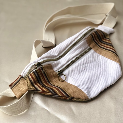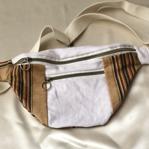 Des sacs colorés et upcyclés avec des tissus de seconde main fabriqués à la main à Bruxelles.