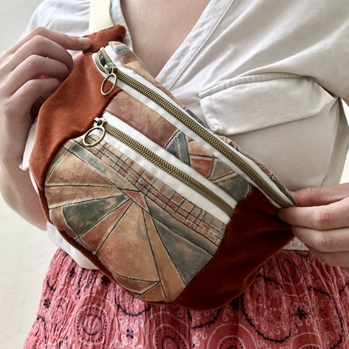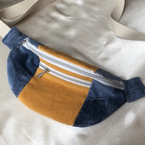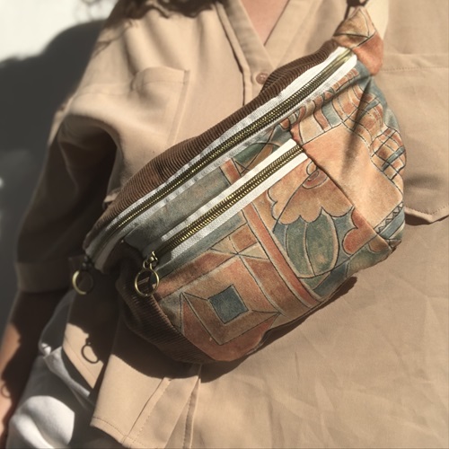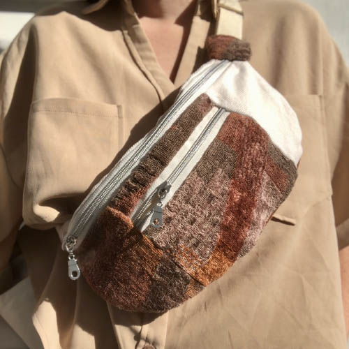 Des sacs colorés et upcyclés avec des tissus de seconde main fabriqués à la main à Bruxelles.