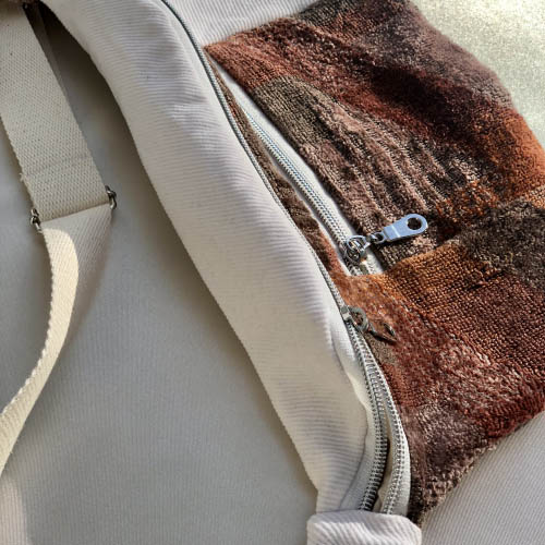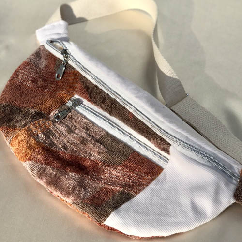 Des sacs colorés et upcyclés avec des tissus de seconde main fabriqués à la main à Bruxelles.